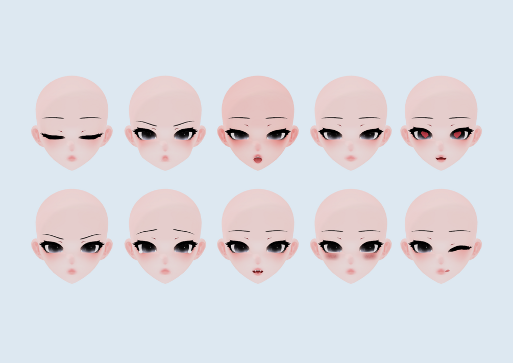 → 10 4k skin textures and 44 eye textures, all hand-painted by me in Clip Studio Paint