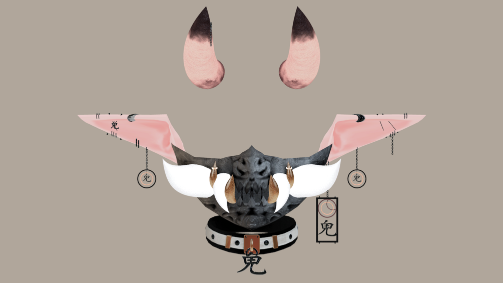 → Contains 6 Accessories: Oni Mask, Horns, Choker, Elf Ears with small piercings, Single earring, and Earring set